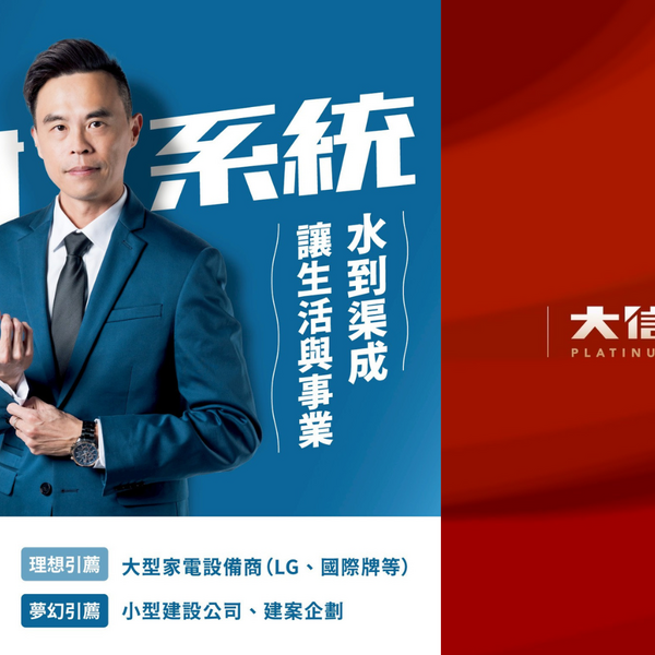 透過高效一對一、企業參訪及可信賴的跨產業合作,他已成功跨足建設公司、家電廠商、社區團購等領域,並持續與空調與設計公司開發新的合作策略。