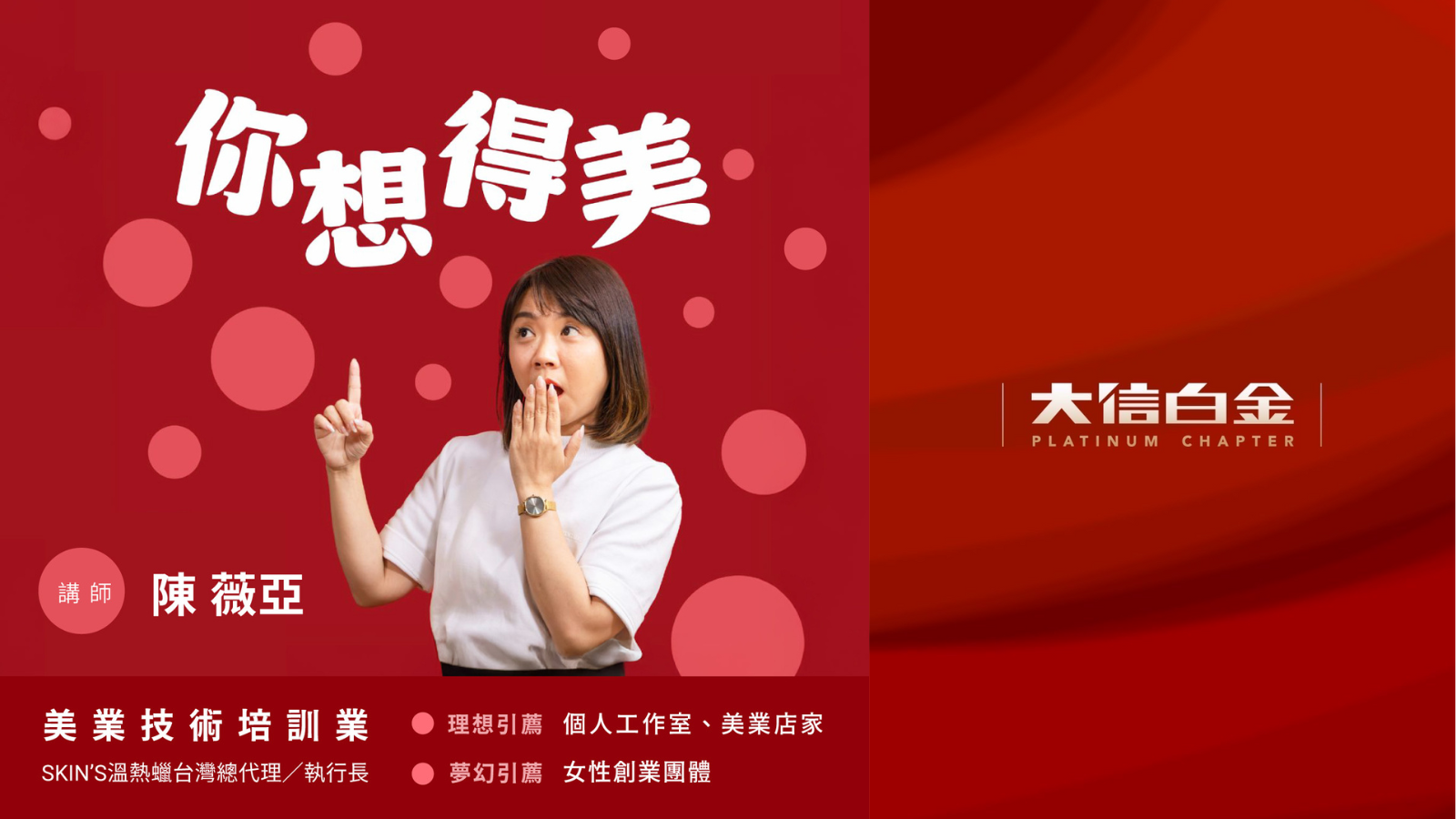 本次講座,邀請你一起重新定義「想得美」,從美業技術者的日常,走向品牌經營與影響力的真實歷程。
