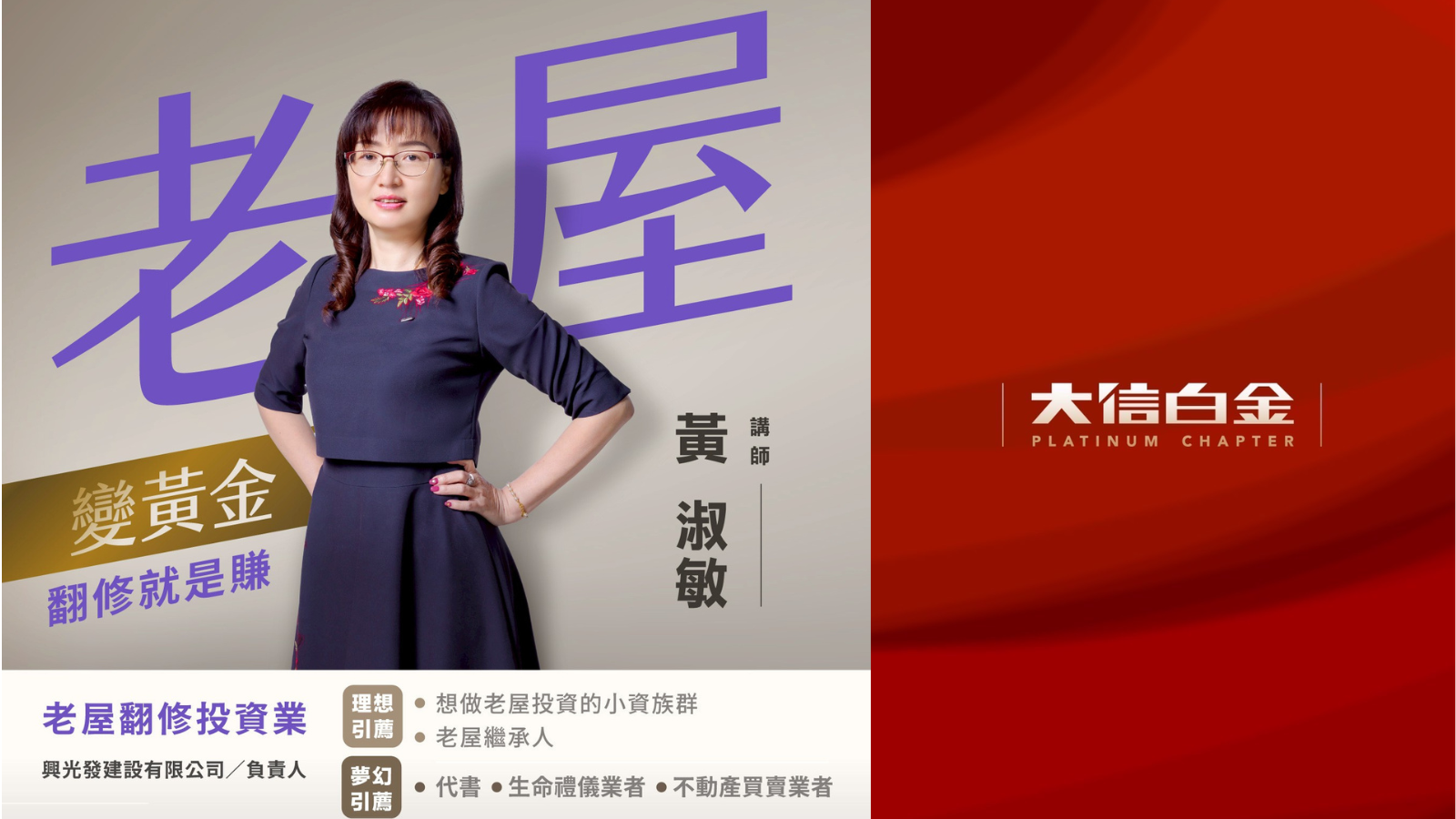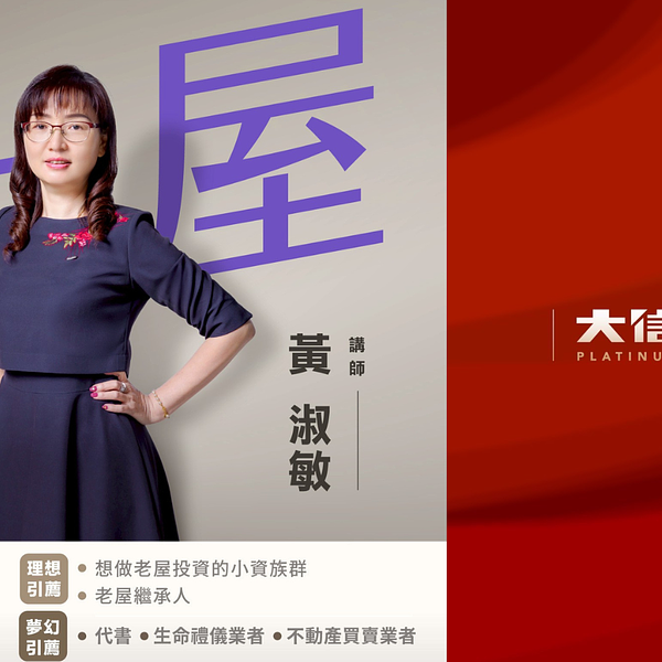 她將分享如何從市場眼光出發,判斷老屋潛力,並透過翻修策略讓資產價值最大化。